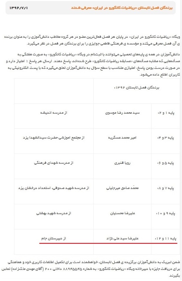 اعلام نتایج مرحله غیرحضوری و تعیین تیم های برگزیده بهمن ماه 1392