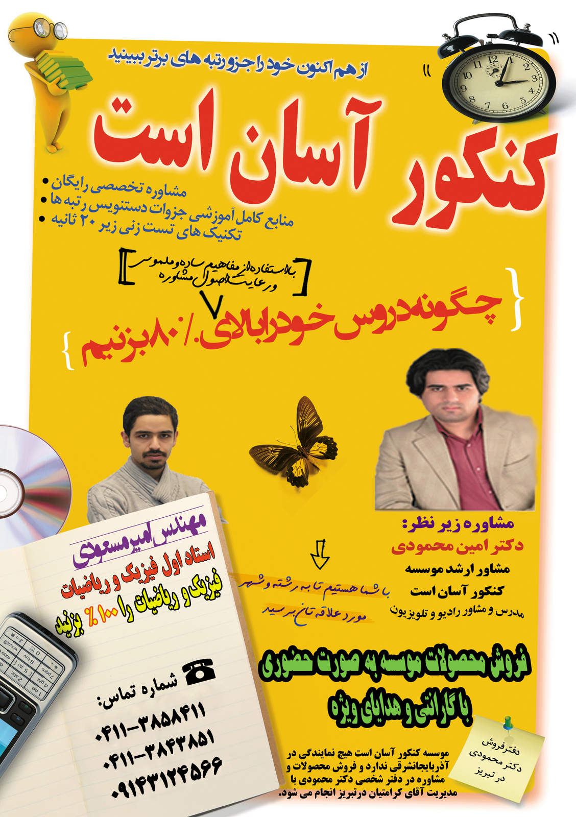 دفتر فروش محصولات کنکور آسان است در تبریز در دبیرستان جام می باشد .