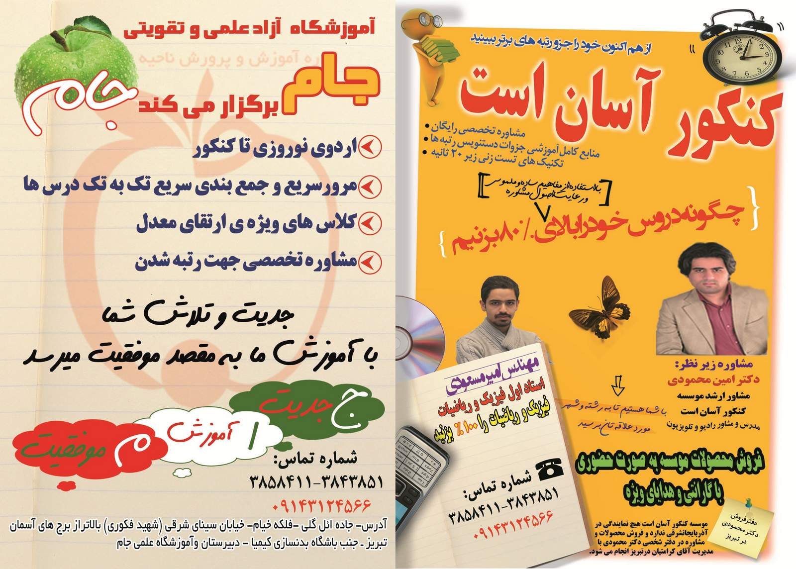 آموزشگاه علمی و آزاد جام برگزار می کند .